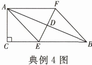 典例 4 [2025·衢州模拟]如图,在 $\triangle ABC$ 中,$\angle ACB = 90^{\circ}$,$D$ 为 $AB$ 边的中点,过点 $D$ 作 $AB$ 的垂线,交 $BC$ 于点 $E$,在直线 $DE$ 上截取 $DF$,使 $DF = ED$,连结 $AE$,$AF$,$BF$。