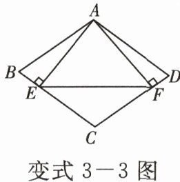 变式 3 - 3 [2023·嘉兴、舟山]如图,在菱形 $ABCD$ 中,$AE \perp BC$ 于点 $E$,$AF \perp CD$ 于点 $F$,连结 $EF$。