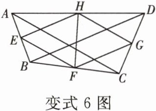 变式 6 [2025·德阳]如图,点 $E$,$F$,$G$,$H$ 分别是四边形 $ABCD$ 的边 $AB$,$BC$,$CD$,$DA$ 的中点。如果 $BD = AC$,四边形 $EFGH$ 的面积为 $24$,且 $HF = 6$,那么 $GH =$()