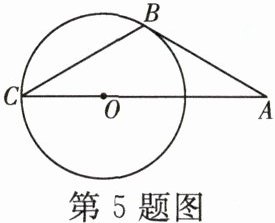 5. [浙教九下 P38 例 3]已知:如图,$A$是$\odot O$外一点,$AO$的延长线交$\odot O$于点$C$,点$B$在$\odot O$上,且$AB = BC$,$\angle A = 30^{\circ}$。求证:直线$AB$是$\odot O$的切线。