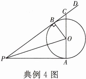 典例 4 如图,$PO$平分$\angle APD$,$PA$与$\odot O$相切于点$A$,延长$AO$交$PD$于点$C$,过点$O$作$OB\perp PD$,垂足为$B$。