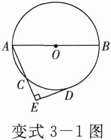 变式 3 - 1 [2025·西湖区校级模拟]如图,$AB$为$\odot O$的直径,$C$为$\odot O$上一点,$D$为$\overset{\frown}{BC}$的中点,$DE\perp AC$,交$AC$的延长线于点$E$。