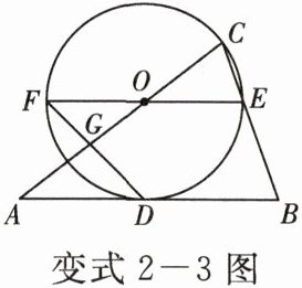 变式 2 - 3 [2025·陕西]如图,点$O$在$\triangle ABC$的边$AC$上,以$OC$为半径的$\odot O$与$AB$相切于点$D$,与$BC$相交于点$E$,$EF$为$\odot O$的直径,$FD$与$AC$相交于点$G$,$\angle F = 45^{\circ}$。