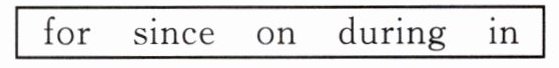 (1)During(2)on(3)in(4)in(5)for