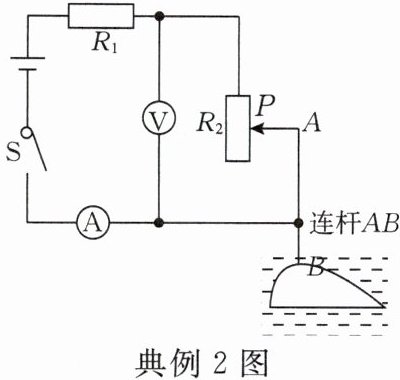 典例 2 [2024·台州三模]如图所示是某项目化小组设计的监测河水流速变化的装置原理图。机翼状的探头始终浸没在水中,通过连杆带动滑动变阻器的滑片 P 上下移动,电源电压保持不变,随着水流速度的增大,下列说法正确的是( )