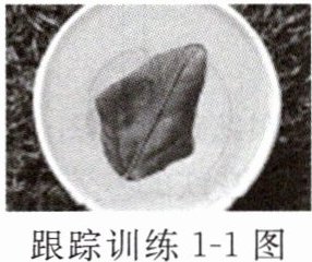 跟踪训练1-1 在班级组织的“自制指南针”活动中,小伟用条形磁体将缝衣针磁化后,将其放在水中漂浮的一片树叶上。多次将树叶轻轻旋转,待树叶静止后,观察到树叶的尖端总是指向南方,如图所示。下列说法中正确的是