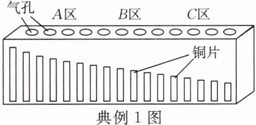 典例 1 [2024·宁波校级模拟]小宁在拆开口琴进行清洗时,观察到琴芯的结构如图所示:在琴芯侧面长方孔处分布着很多长短、厚薄不同、下端固定的铜片,当气流从发音孔出入时铜片发生振动,从而吹出不同的声音。