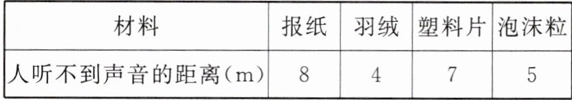 (3)为进一步探究不同材料的隔音效果,小宁用不同材料制成相同大小和厚度的耳罩,用相同的口琴声音进行探究,得到的实验结果如表所示: