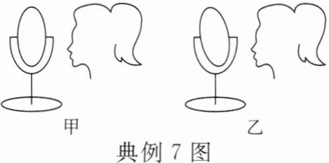 典例 7 [2024·宁波江北区模拟]如图所示为可以旋转的镜子,正常使用时镜子正对脸庞,如图甲,为了观察额头,在脸庞不动的情况下逆时针向上旋转镜子,如图乙所示,前后两次通过平面镜所成的像( )