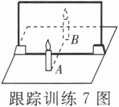 跟踪训练 7 小明跟奶奶聊天时,发现奶奶一直认为“人离平面镜越近,人在镜中的像越大”,为了纠正奶奶的错误认知,小明做了如下实验。