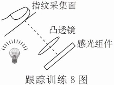 跟踪训练 8 [2024·温州校级模拟]如图所示是兴趣小组设计的光学式指纹锁模型。当手指按压在指纹采集面上,指纹经凸透镜成像在感光组件上,识别系统比对成功后开锁。感光组件上成像的特点是( )