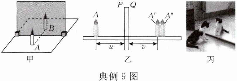 典例 9 [2024·杭州校级模拟]如图甲所示是小金探究“平面镜成像特点”的实验装置。