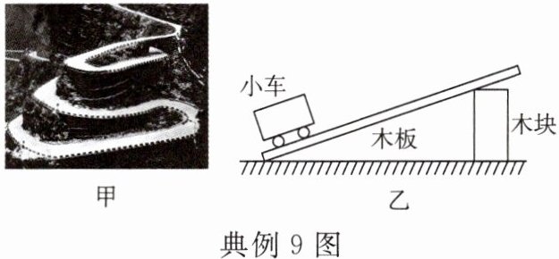 典例9 [2024·杭州钱塘区三模]小明乘坐汽车沿如图甲所示的盘山公路上山。对此小明猜想:“沿斜面匀速直线向上拉小车,如果小车越重,斜面的机械效率就越高”。请设计实验验证其猜想。