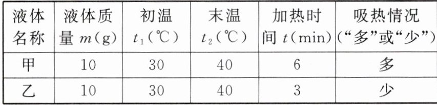 (2)如表所示是小明探究甲、乙两种液体的吸热能力时记录的实验数据。
