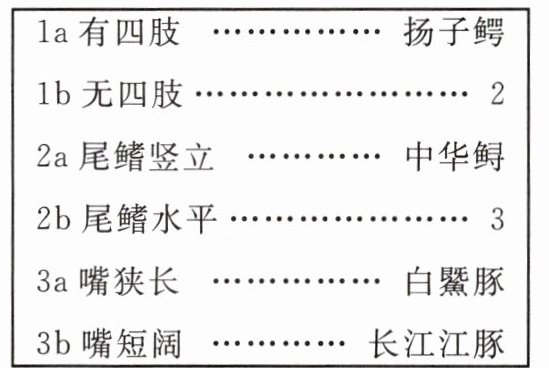 典例4 [2025·浙江多校联考]长江江豚、白鱀豚、中华鲟、扬子鳄均属长江流域的珍稀物种。某同学设计了一张检索表对这四种动物进行分类。依据检索表,下列属于白鱀豚和长江江豚共同特征的是 ( )