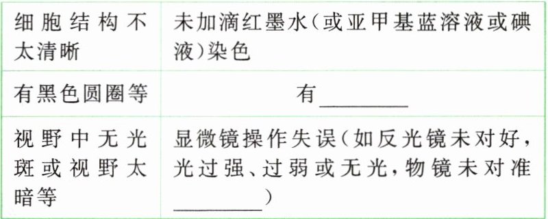 (3)在观察临时装片时,可能会有下列现象,分析其可能的原因: