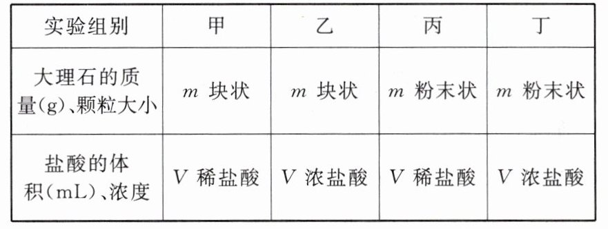 (2)若探究盐酸的浓度对上述反应的影响,可选择实验甲与______(选填实验组别)进行对照。