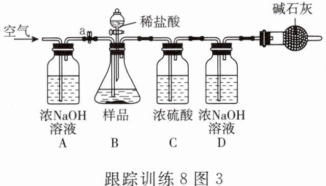 小组同学完成某石灰石样品中 CaCO₃的质量分数测定,其方法是将样品与一定量的稀盐酸反应,测定反应后生成的 CO₂质量,再根据 CO₂的质量求出样品中 CaCO₃的质量分数。