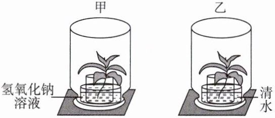 (1)处理:将甲、乙装置放在黑暗处一昼夜后,一起移到光下照射几个小时;各取甲、乙装置中植物的一片叶子,依次编号A、B,然后经酒精脱色、清水冲洗、碘液染色。已知氢氧化钠溶液能吸收二氧化碳气体。