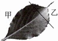 (1)处理:将一盆生长良好的植物放在黑暗处一昼夜,然后选取一片叶子将叶脉切断(靠近叶柄一侧为甲,叶片顶端为乙),移到光下照射几个小时;摘下这片叶片,经过酒精脱色、清水冲洗、碘液染色。