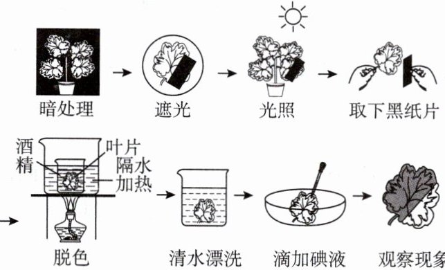 ⑦几分钟后用清水冲掉叶片上的碘液,观察叶片的颜色变化。