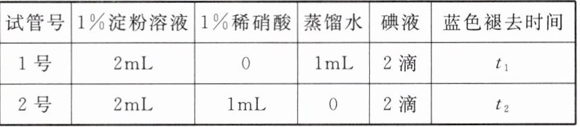 (3)实验改进后,若实验测得 t₁______t₂(选填“大于”“小于”或“等于”),则说明硝酸根离子能提高唾液淀粉酶的催化效率。