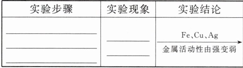 (3)$Cu + 2AgNO_{3} = 2Ag + Cu(NO_{3})_{2}$ 取少量硫酸亚铁溶液于试管中,伸入铜丝与溶液反应 无明显变化