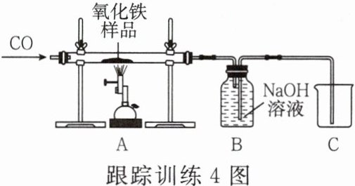 跟踪训练 4 小金用如图所示的实验装置模拟工业炼铁,选用 CO 和氧化铁样品(含少量不与 CO 反应的杂质)进行反应。