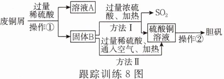 跟踪训练 8 丢弃的废铜屑其中混有少量铁屑,活动小组的同学欲利用其制取胆矾晶体(CuSO₄·5H₂O),他们设计了如图所示两种制取流程。