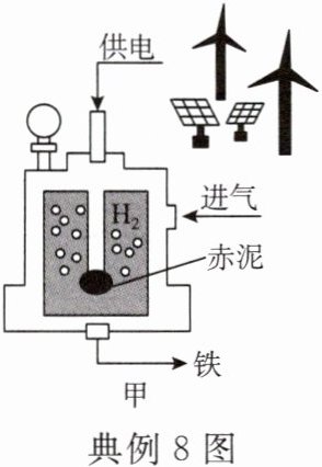 典例 8 [2024·广东]科研人员提出一种回收利用铝冶炼产生的废渣赤泥(含 Fe₂O₃)的新方法,助力产业逐“绿”前行。应用新方法从赤泥中提取铁的装置示意图如图甲所示。