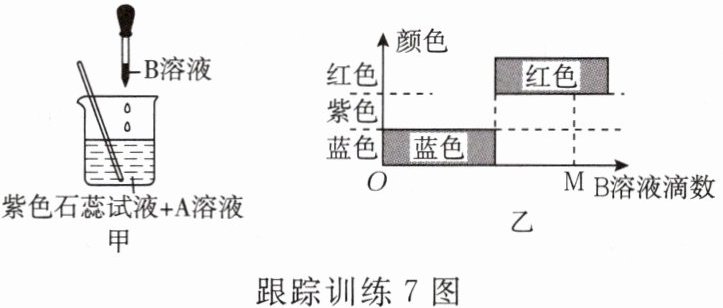 跟踪训练 7 兴趣小组研究酸碱反应时利用稀硫酸、氢氧化钠溶液、紫色石蕊试液进行实验,实验操作和溶液颜色变化如图所示。