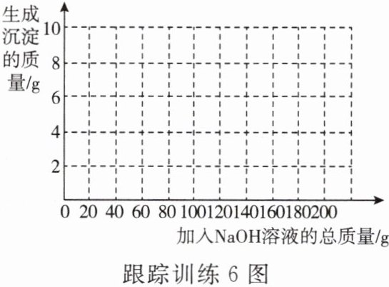 跟踪训练 6 [2024·杭州滨江区二模]小滨同学在参加科学拓展课时,进行了以下实验:取硫酸和硫酸铜的混合溶液 100g,将 200g 10%的 NaOH 溶液分 5 次加入混合溶液中(整个过程不考虑水蒸发带来的影响),得到如下记录表: