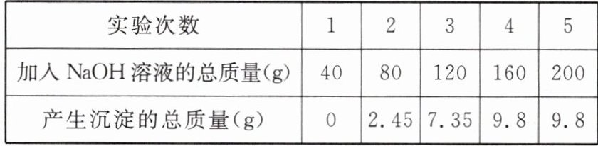 (1)第 4 次加入 NaOH 溶液后,经充分反应,烧杯中混合溶液的溶质是________(填化学式)。
