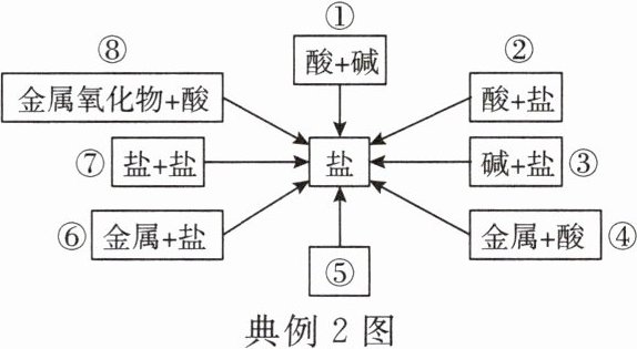 典例 2 [2025·宁夏银川兴庆区校级二模]小华学习了单质、氧化物、酸、碱、盐的性质后,发现许多不同类别的物质反应时都能生成盐,于是她构建如图所示的知识网络。结合此图回答下列问题: