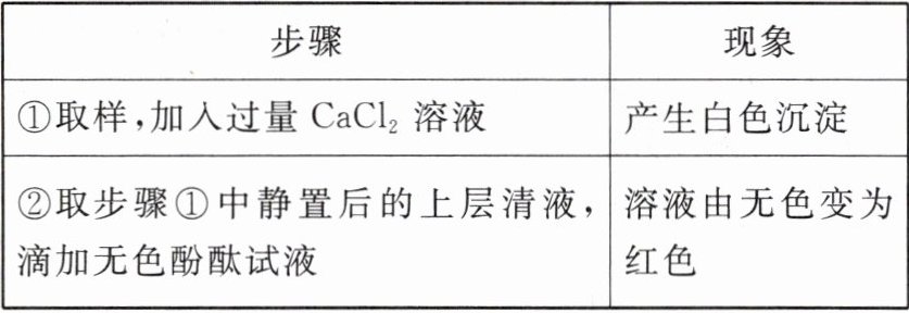 (5)取久置的$\mathrm{NaOH}$溶液,加入足量$\mathrm{CaCl_2}$溶液后,产生白色沉淀,过滤,向白色沉淀中加入足量稀盐酸,若观察到有气泡冒出,说明原溶液中有$\mathrm{Na_2CO_3}$(合理即可)。
