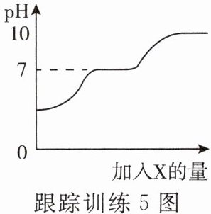 跟踪训练 5 已知:常温下 CaCl₂、NaCl 的水溶液均呈中性。向含有 HCl 与 CaCl₂ 的混合溶液中逐滴滴入过量的 X,溶液 pH 与滴入 X 的量的关系如图所示,则 X 可能是下列物质中的( )