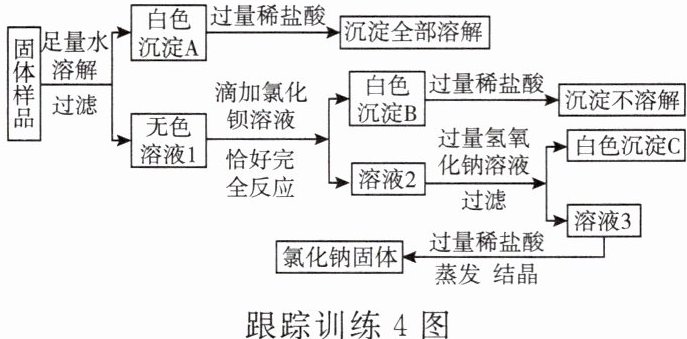 跟踪训练 4 [2024·余姚一模]某氯化钠固体样品中可能含有硫酸钠、硝酸钡、氯化镁、硫酸铜和碳酸钙中的一种或几种。为确定其成分,取 40g 固体样品,按下列流程进行实验。回答下列问题: