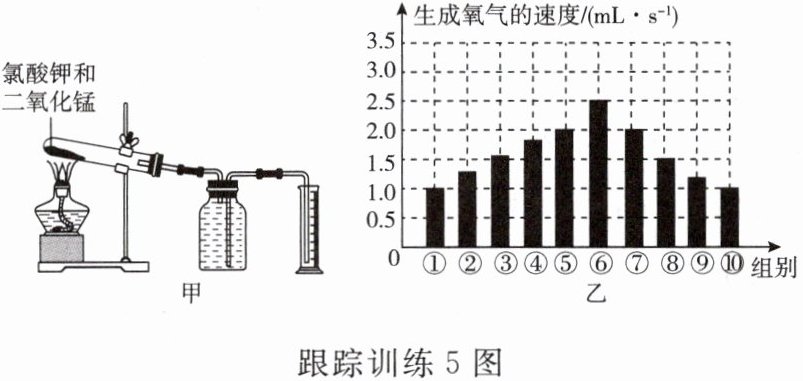 ③将 10 支试管分别加热,记录生成 300mL 氧气所需时间,计算生成氧气的速度如图乙所示。