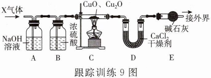 跟踪训练 9 某 CuO 粉末中混有少量 Cu₂O,现有一课外活动小组利用如图所示装置测定其中 Cu₂O 的质量。已知在加热条件下,氢气还原氧化亚铜生成铜和水,一氧化碳还原氧化亚铜生成铜和二氧化碳。请根据图示内容回答下列问题:
