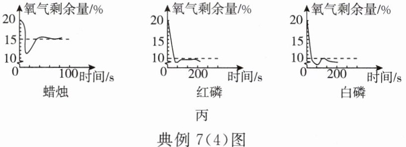 (4)科学兴趣小组想探究用不同物质在空气中燃烧测定氧气含量方法的优劣。他们用足量的蜡烛、红磷和白磷分别在相同体积与状态的空气中燃烧,用氧气探测器测定密闭容器中剩余氧气与时间的关系如图丙所示,下列说法正确的是________(填字母)。