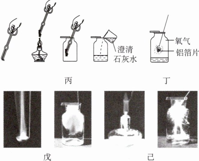 结论二:铝在氧气中剧烈燃烧,如图丁所示。