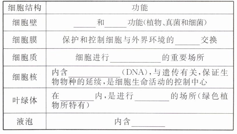 答案: 2.保护 支持 物质 生命活动 遗传物质 细胞质 光合作用 细胞液
