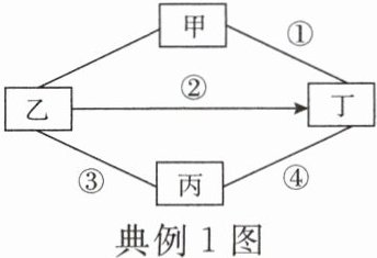 [2025·慈溪校级模拟]物质转化是化学研究的重要内容。甲、乙、丙、丁是不同类别的常见物质,甲是单质,丁是配制波尔多液的原料,转化关系如图(“—”表示相互反应,“→”表示一步转化,涉及的反应均为初中化学常见反应)。下列说法正确的是(