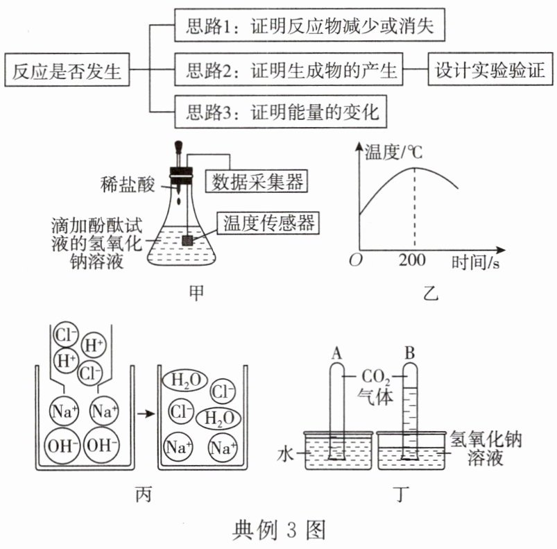 为验证二氧化碳与氢氧化钠发生反应。将装满二氧化碳气体的试管分别倒扣在装有等质量水和氢氧化钠溶液的水槽中,一段时间后现象如图丁所示。