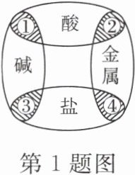 1. 学习了物质分类与转化规律后,某同学绘制了部分物质间相互反应的关系图。图中阴影部分表示相邻两类物质的反应,其中不能用于制取 ${FeCl_{2}}$ 的是 (
