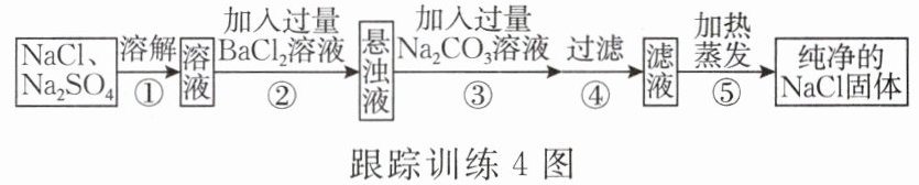 跟踪训练 4 [2024·杭州桐庐县一模]为了将混有硫酸钠的氯化钠提纯得到纯净的氯化钠固体,某小组设计了如图所示流程: