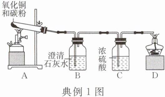典例1 [2024·浙江十二校联考]为探究碳和氧化铜反应生成的气体种类,小明进行如下实验。(装置B、C中药品足量,且所有反应均充分进行)