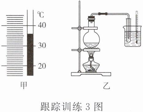 ℃。(2)将通有导气管的干燥试管放入烧杯中,向试管中导入水蒸气如图乙所示。一段时间后小科观察到