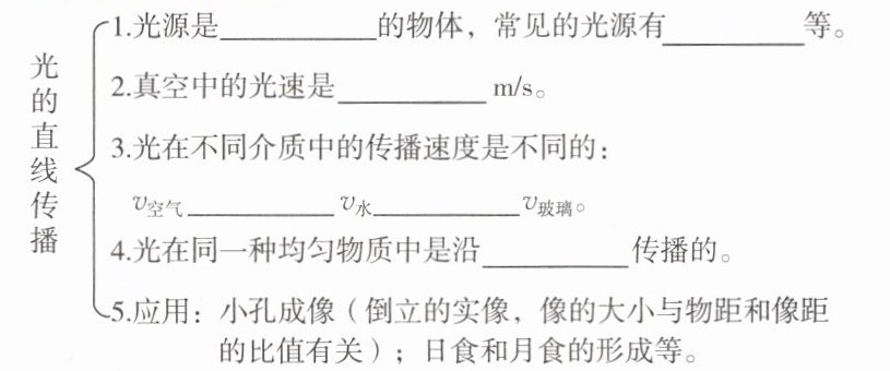 二、1.自身会发光 太阳、电灯 2.3×10⁸ 3.> > 4.直线