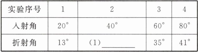 (3)光从空气斜射入玻璃中时,折射角增大值小于入射角增大值(合理即可)